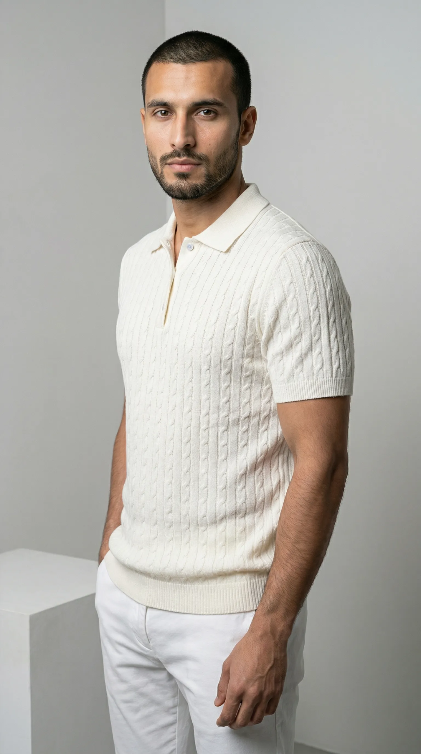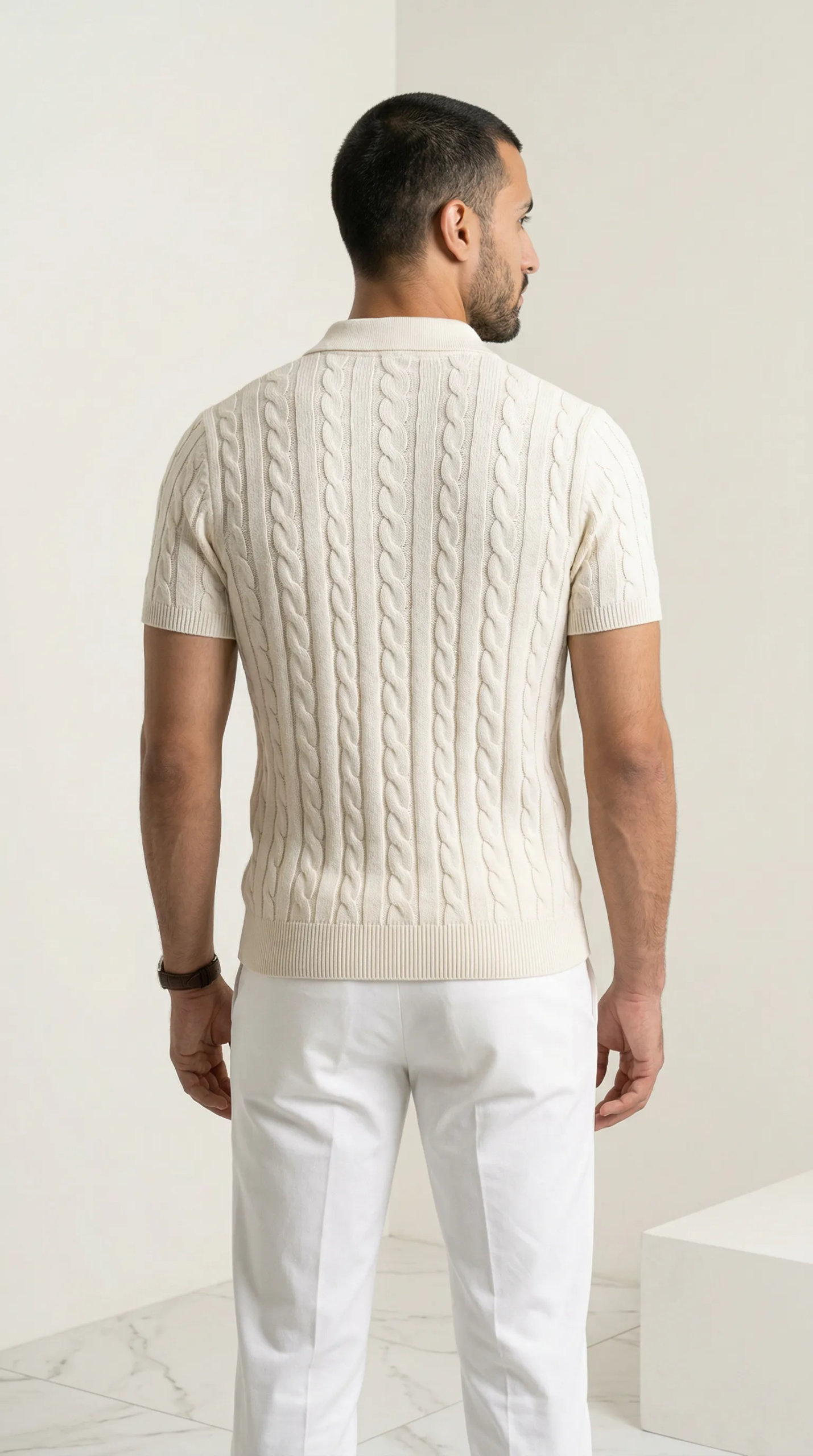 Crafted for those who appreciate the finer things. The Cream Cable Knit Polo is the most refined polo in our collection. Rich texture, warm tone, and an unmistakable presence that sets it apart from everything else in your wardrobe.