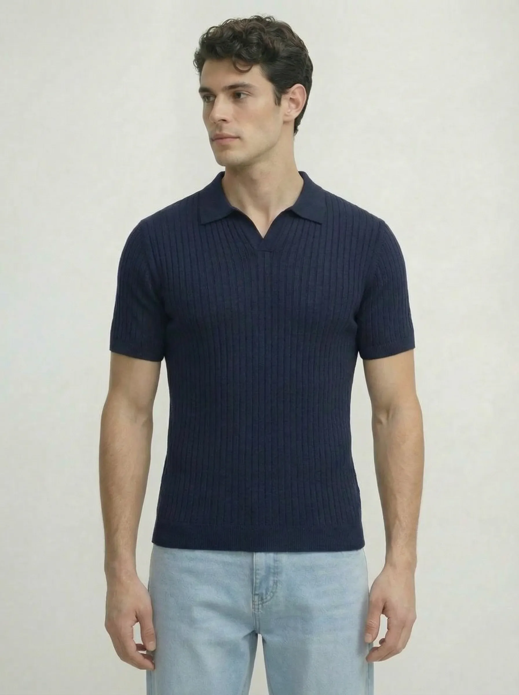Sharp, structured, and built to make an impression. The navy tight-ribbed polo fits like it was made for you. Because at Level Apparels, fit is never an afterthought.